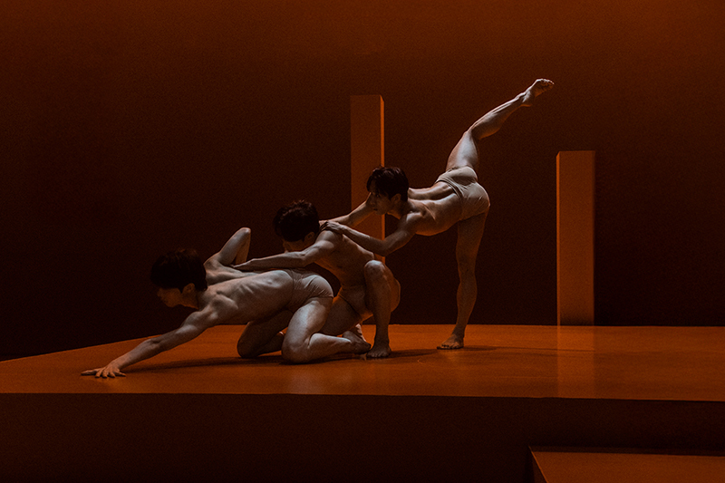 세 무용수는 더 높은 곳에 오르기 위해 서로를 밀어내며 치열하게 경쟁한다. 몸과 몸이 부딪히고 뒤엉키는 과정에서 각자의 욕망과 집념이 드러난다. 버티고 올라서기 위한 몸부림 속에서 타자의 무게와 노력의 시간을 이해한다. 극한의 경쟁 끝에 몸은 더이상 혼자 서기보다 서로를 붙들며 균형을 만든다. 마침내 세 사람의 몸은 함께 균형을 이루며 하나의 움직임을 만들어낸다.