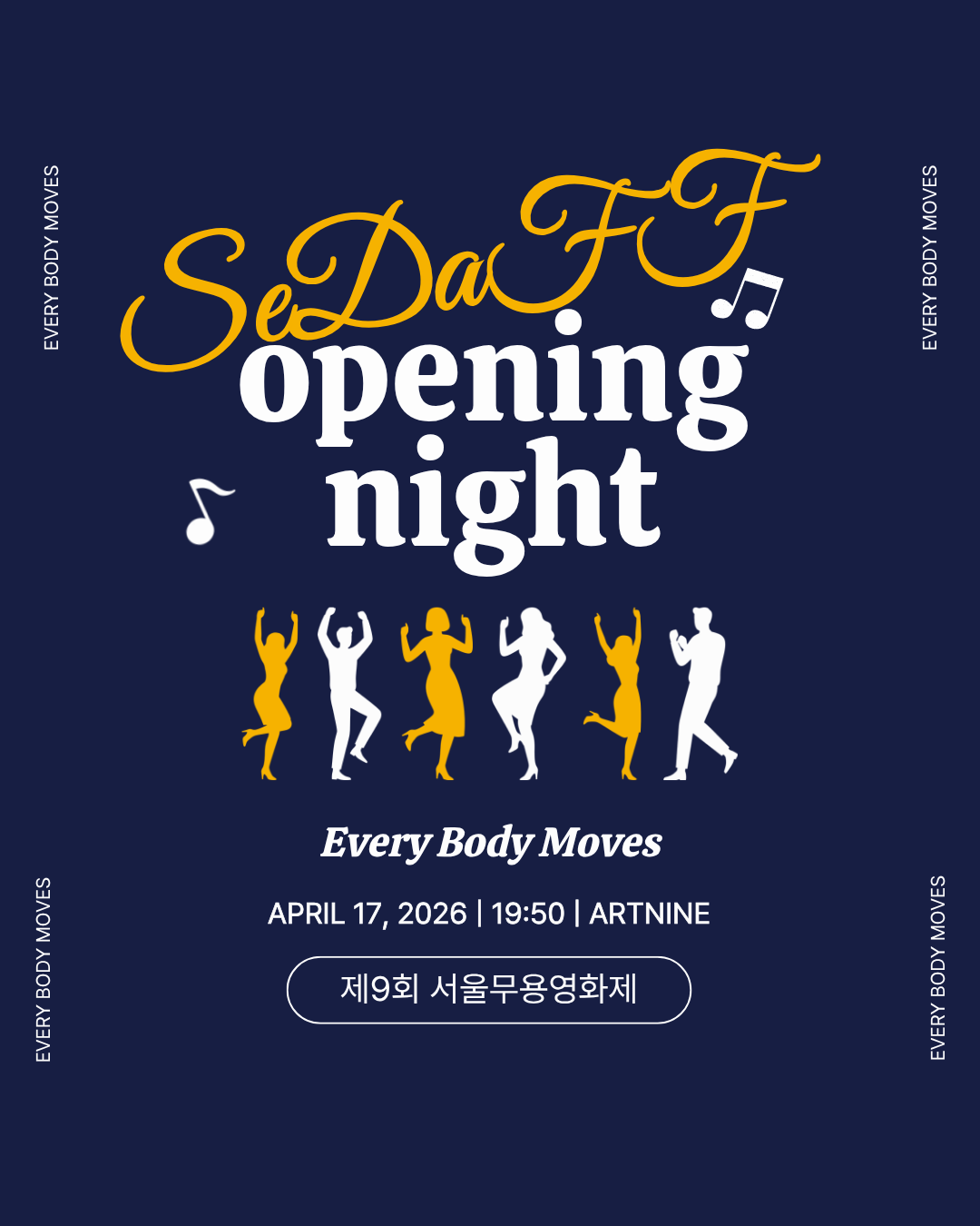 ![]() 드디어 ! EVERY BODY MOVES! 제9회 서울무용영화제(SeDaFF) 공식 포스터를 공개합니다. 올해 SeDaFF가 담은 메시지는 하나입니다. 장르, 성별, 장애 인종.. 그 모든 것이!! 움직임 앞에서 경계 따윈 없다는 것! Everybody Moves 모두가 움직인다. Every Body Moves 모든 몸이 움직인다. 두 문장이 겹치는 그 지점, 올해 SeDaFF의 모든 프로그램은 거기서 출발했습니다. 키워드는 하나, Boundless. 경계 없음. 그리고 올해엔 특별한 이벤트가 진행 예정입니다. 4월 17일 개막작이 상영 후, SeDaFF 오프닝 나잇 DJ와 함께하는 오프닝 파티가 이어집니다. 스크린에서 시작된 에너지, 현장에서 직접 이어받는 밤. 무용영화 보고, 음악 듣고, 같은 공간에서 함께 움직이는 것. 그게 바로 Every Body Moves !! ![]() 제9회 서울무용영화제는 4월 17일 부터 19일까지 아트나인에서 개최됩니다. 많은 관심과 기대 부탁드립니다. |